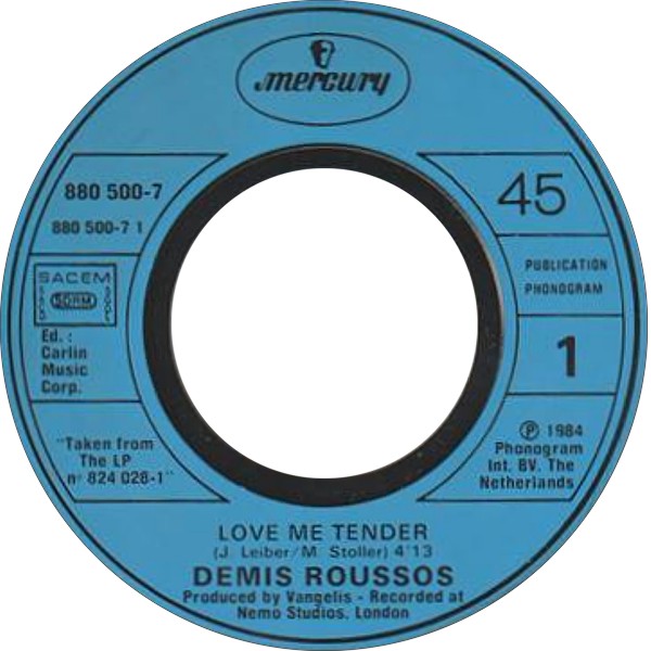 | LOVE ME TENDER / RED SAILS IN THE SUNSET | MERCURY 880 500-7 | STARBLEND STAR 4 | |||