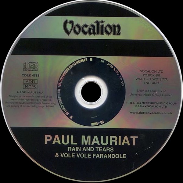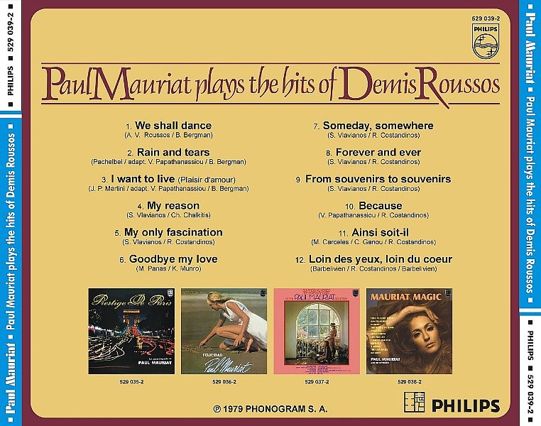 Nota Bene: i dischi di Paul Mauriat che includono brani degli Aphrodite's Child (quasi sempre Rain and tears o I want to live) sono innumerevoli. In questa pagina, per evitare che risutasse molto dispersiva, sono riportati solo alcuni di questi dischi.