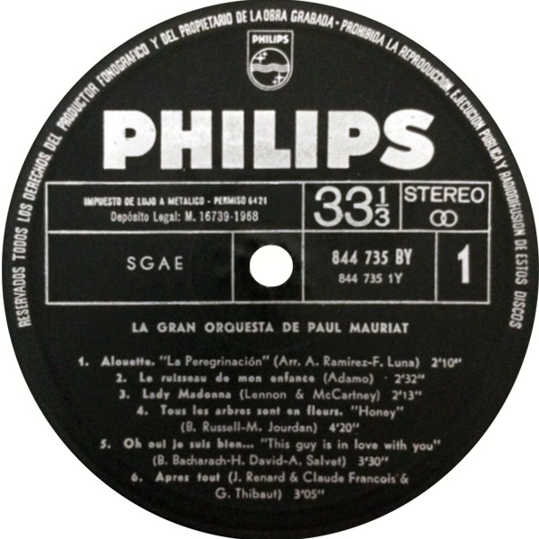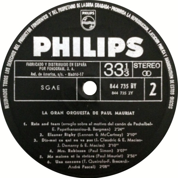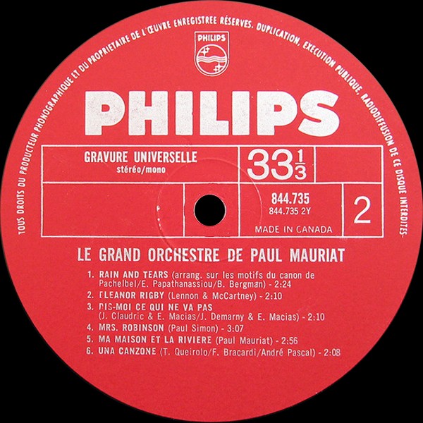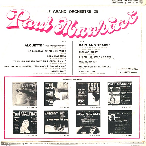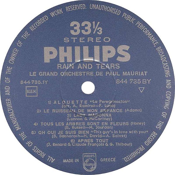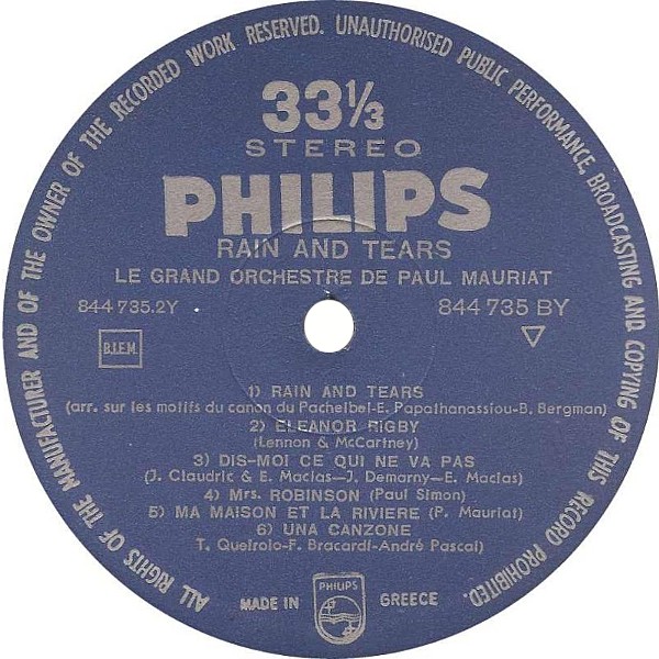 PAUL MAURIAT: LP "RAIN AND TEARS"