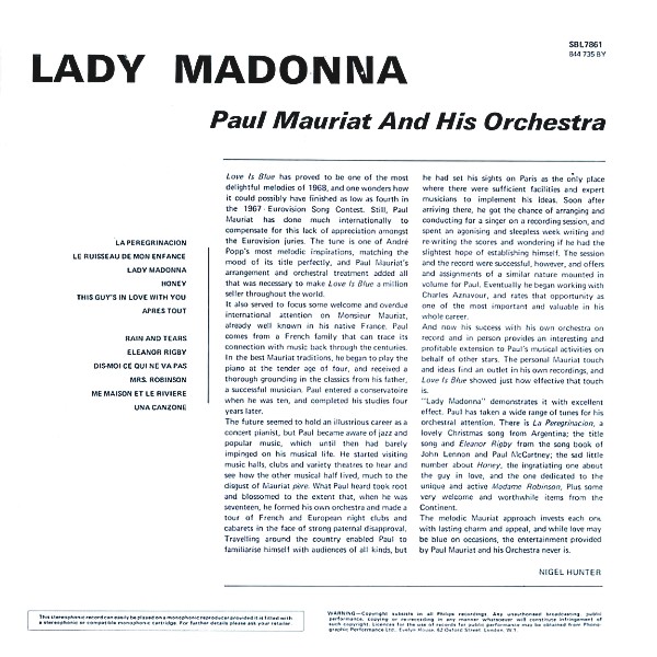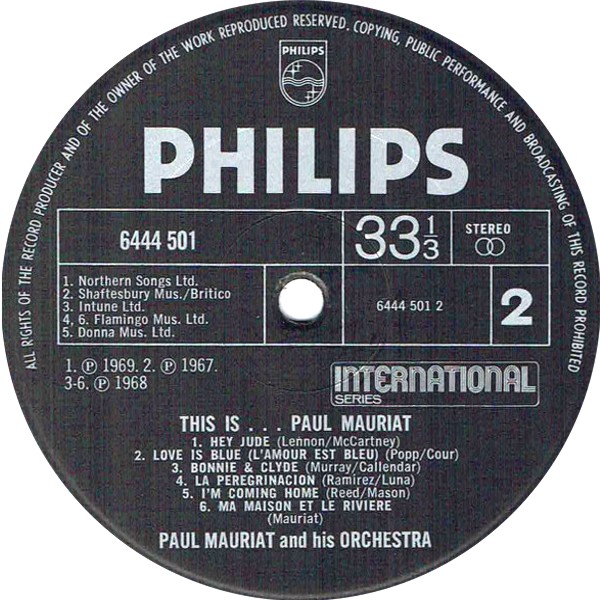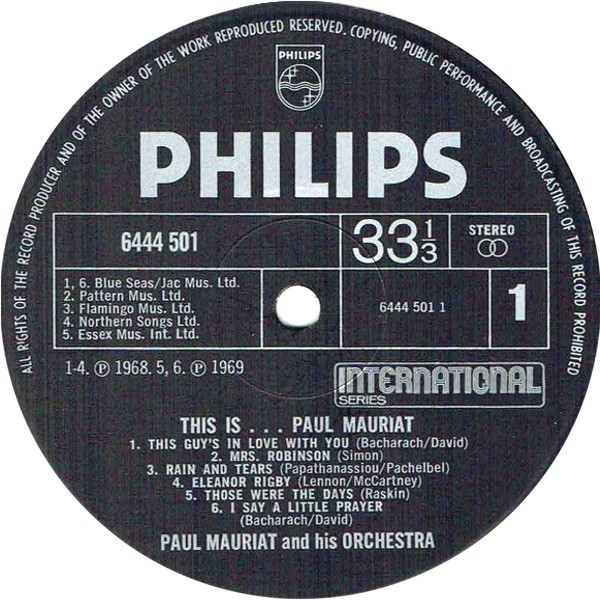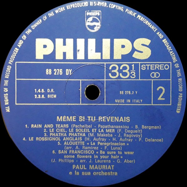 Nota Bene: i dischi di Paul Mauriat che includono brani