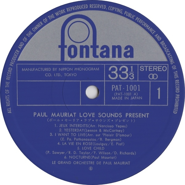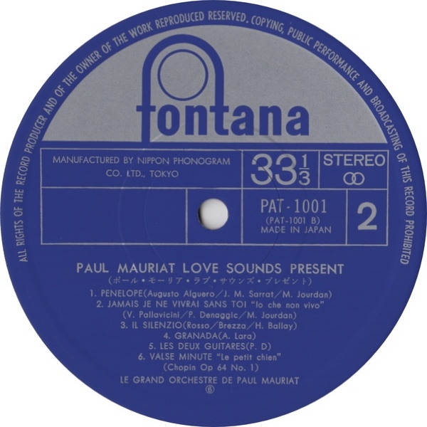 1974 - LP FONTANA PAT-1001 (GIAPPONE) |
