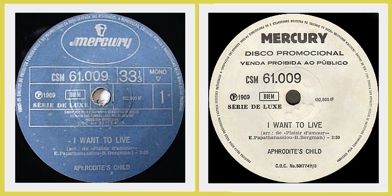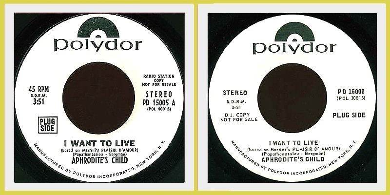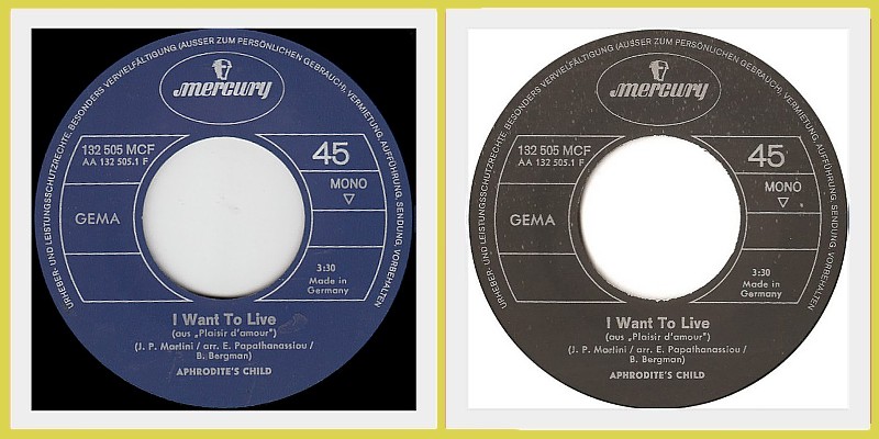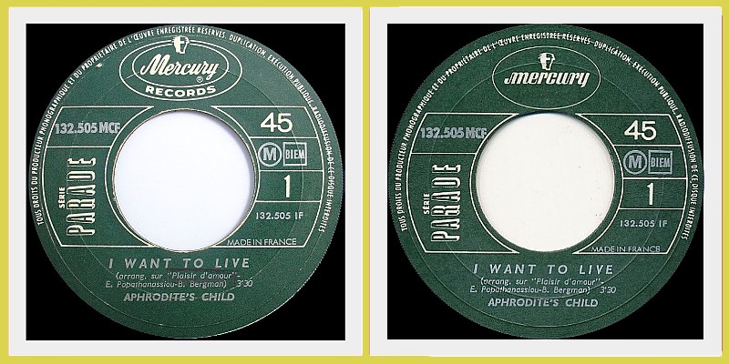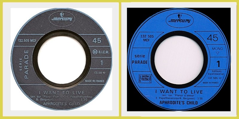 i dischi degli Aphrodite's Child nelle varie versioni I want to live / Magic mirror |