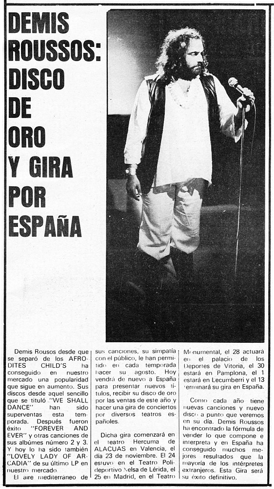 Articoli Demis Roussos e Aphrodite's Child: 1974 (dicembre)