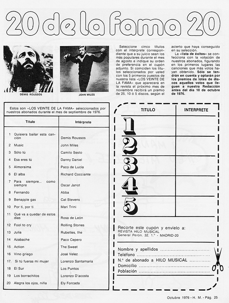 | Classifica dischi Spagna e recensione LP "Los Super 20" |