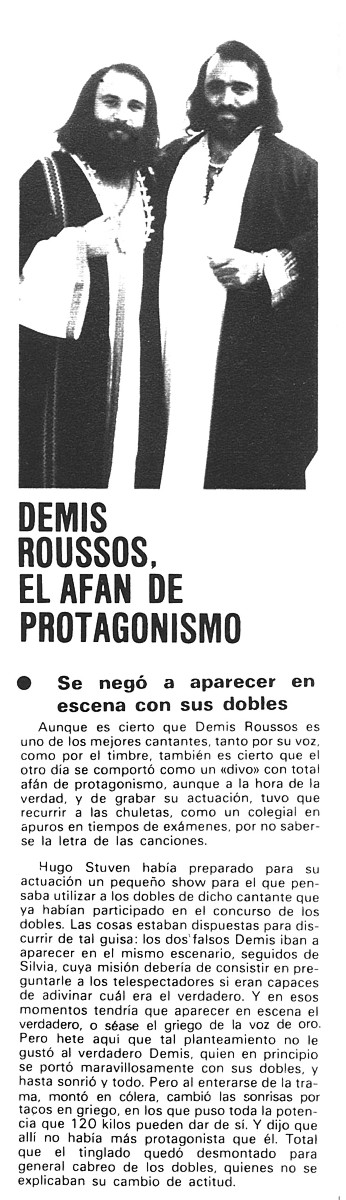 | A Demis Roussos no le gustaron sus "dobles" |
