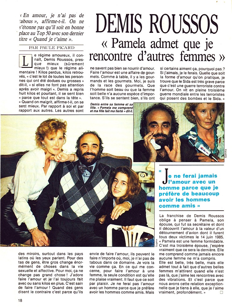 | Demis Roussos - "Pamela admet que je rencontre d'autres femmes" |