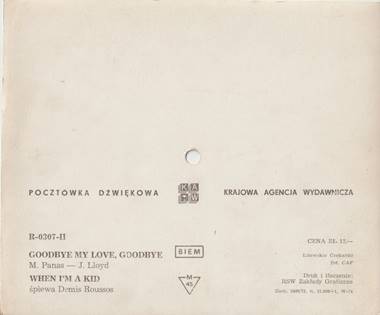 "Moye ti olsnienie" (MY ONLY FASCINATION) / "Sliczna pani z Arkadii" (LOVELY LADY OF ARCADIA) Flexi disc F. RZEZNICKI 151 (Polonia)